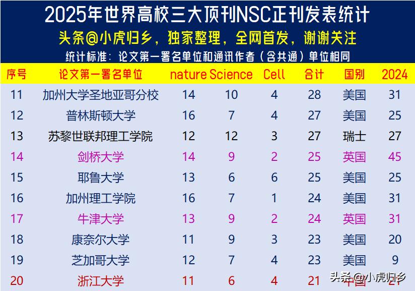 5 {$ A9 G z6 @, K( Z二、世界高校11-20名其中,美国高校6所,英国高校2所,瑞士和中国高校各1所。 十所高校NSC正刊发表总数均超过20篇。 浙江大学挤进世界前20名。